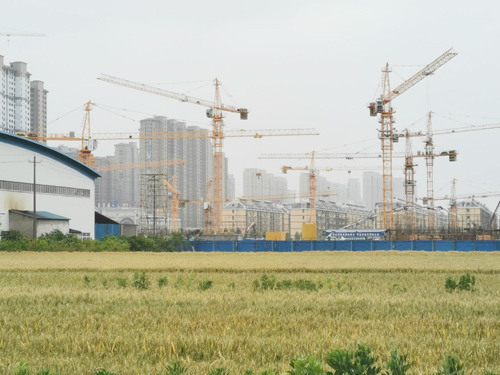塔吊(tower crane)尖的功能是承受臂架拉繩及平衡臂拉繩傳來的上部荷載,并通過回轉塔架、轉臺、承座等的結構部件式直接通過轉臺傳遞給塔身結構。自升塔頂有截錐柱式、前傾或后傾截錐柱式、人字架式及斜撐架式。 凡是上回轉塔機均需設平衡重,其功能是支承平衡重,用以構成設計上所要求的作用方面與起重力矩方向相反的平衡力矩。除平衡重外,還常在其尾部裝設起升機構。起升機構之所以同平衡重一起安放在平衡臂尾端,一則可發揮部分配重作用,二則增大繩卷筒與塔尖導輪間的距離,以利鋼絲繩的排繞并避免發生亂繩現象。平衡重的用量與平衡臂的長度成反比關系,而平衡臂長度與起重臂長度之間又存在一定比例關系。平衡重量相當可觀,輕型塔機一般至少要3~4t,重型的要近30t。